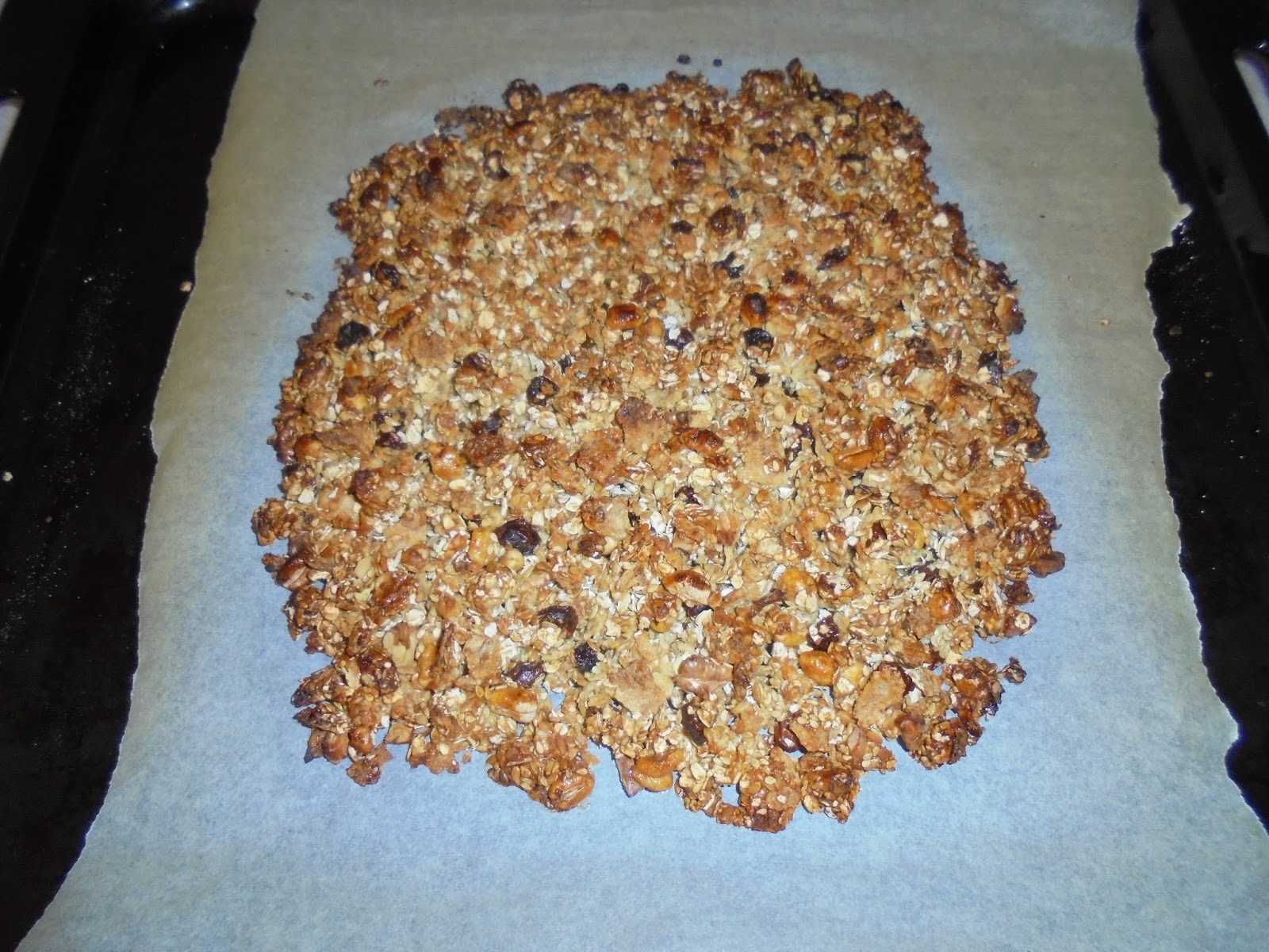 Depois, é necessário um ingrediente unificador, que pode ser mel, caramelo, sumo de laranja, etc. Mistura-se tudo e vai ao forno previamente aquecido cerca de 15 minutos.